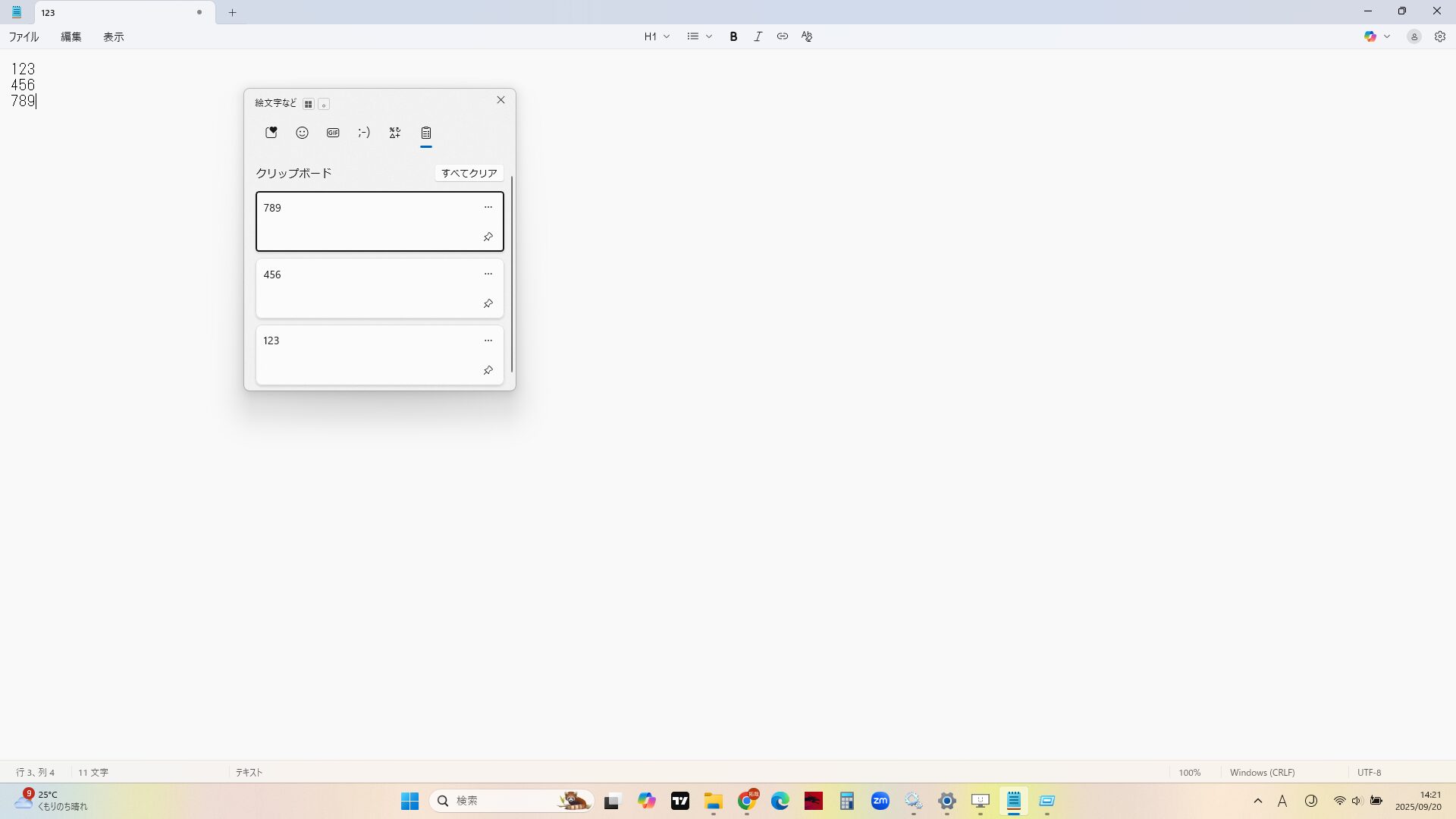 クリップボードに履歴が残ったら貼り付けたい場所にEnterまたはクリックで貼り付けできます。クリップボードは別の場所をクリックしたら消えてしまうので都度開かなければなりませんがコピー元との行き来を考えるとだいぶ楽だと思います。